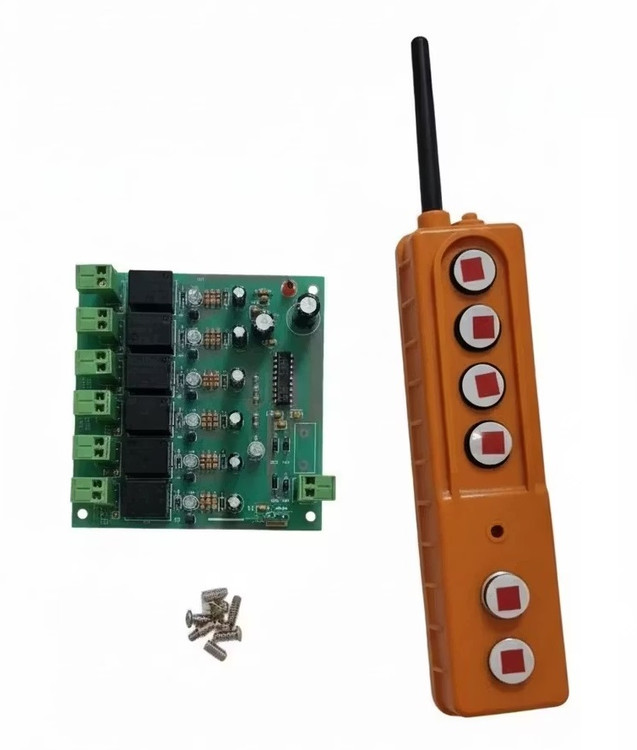 برد فرستندهگیرنده جرثقیل 6 جهت به همراه کنترل بیسیم، یکی از اجزای کلیدی سیستمهای کنترل جرثقیل سقفی، دروازهای و بالابرهای صنعتی است که وظیفه انتقال فرمانها از کنترل دستی به برد گیرنده را بر عهده دارد.