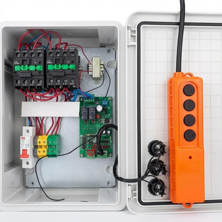 ریموت بیسیم وینچ سقفی بهراحتی روی انواع وینچهای تکفاز و سهفاز نصب شده و جایگزین مناسبی برای ریموتهای سیمدار سنتی بهشمار میرود، بهویژه در محیطهایی که دسترسی مستقیم به دستگاه سخت یا خطرناک است.