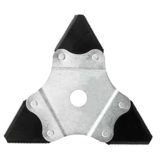 تیغه علف تراش 3 پره معمولاً از مواد مقاوم و با کیفیت ساخته شده است که توانایی تحمل فشار و سایش را دارد. طراحی سه پرهای آن باعث میشود که تیغه بتواند بهطور مؤثر و یکنواخت علفها و گیاهان را قطع کند.