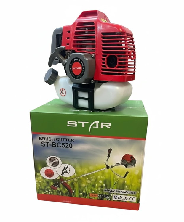 علف تراش دوشی استار با استفاده از شاسی دوشی طراحی شده است. برند سازنده این دستگاه استار است که محصول خود را با رعایت اصول ارگونومیک به همراه بندهای پهن دوشی جهت استقرار ساده اما کارآمد بر دوش اپراتورهای خود طراحی کرده است. برای ساخت این دستگاه نیز از موتور تک سیلندر بنزین سوز با عملکرد دو زمانه از نوع ۵۲ سیسی استفاده شده است. این علف زن ۵۲ سیسی قابلیت کار کردن با انواع تیغههای فولادین را دارد. در عین حال به همراه یک تیغه فولادین ۴۰ پره و هد نخ پلاستیکی عرضه شده است. این محصول با شرایط کار ساده، مانور پذیری عالی و البته توانایی کوپل شدن انواع الحاقی عرضه شده است.
