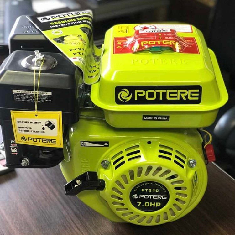 موتور تک سیلندر پوتر مدل PT210مخصوص نصب شدن بر روی تجهیزات نیمه سنگین کارگاهی و باغبانی طراحی شده است. حجم توان ۷ اسب بخاری این موتور کاملاً مناسب تامین نیروی محرکه بسیاری از ماشینآلات موتوریزه شده میباشد. از موتور تک بنزینی 7 اسب پوتر میتوانید برای راهاندازی ماشینآلات مانند انواع تیلر، سمپاش فرغونی، موتور برق، موتور پمپ آب، کمپکتور صفحهای، ماله پروانهای و مولد ویبراتورهای مکانیکی استفاده کنید.