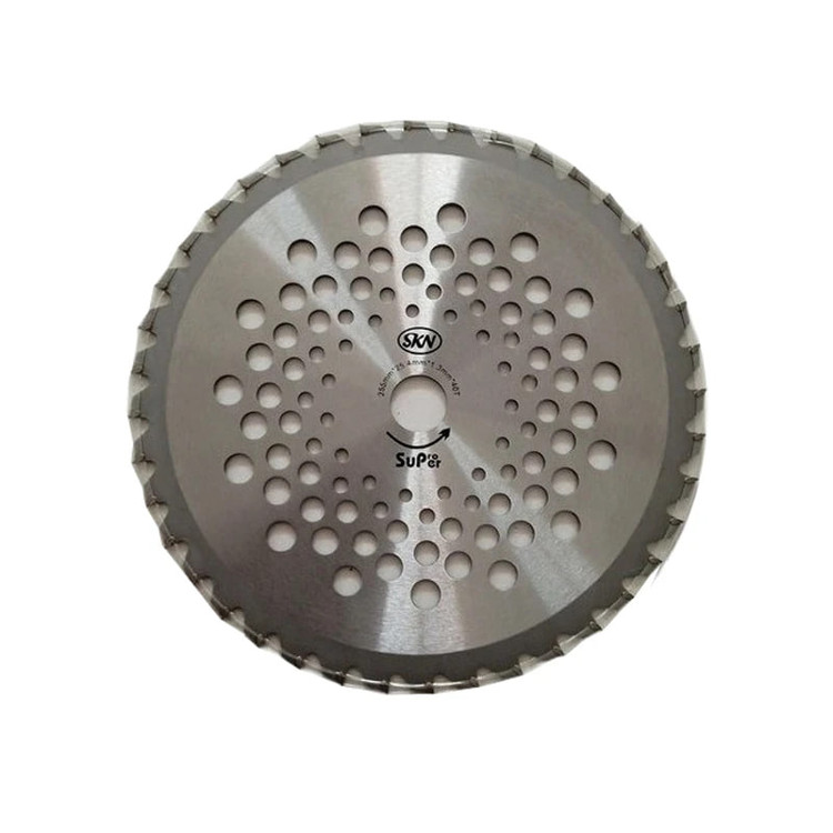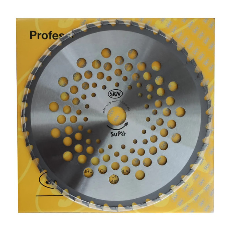 تیغه علف زن 40 دندانه الماسه یکی دیگر از انواع تیغه علف زن است که شما می توانید آن را برای علف زن خود تهیه کنید. این تیغه هم توسط برند معتبر SKN در بسته بندی جعبه زرد رنگ به بازار کشور عرضه شده است. این تیغه دارای ابعاد استاندارد بوده و به تمامی علف زن های موجود در بازار ایران متصل می گردد. ابعاد تیغه علف زن 40 دندانــه الماســـه محافــظ دار عبارت است از 1.3 میلی متر ضخامت, 25.4 میلی متر قطر حفره میانی و 255 میلی متر قطر خود تیغه که مناسب تمامی علف زن های موجود در بازار ایران است.