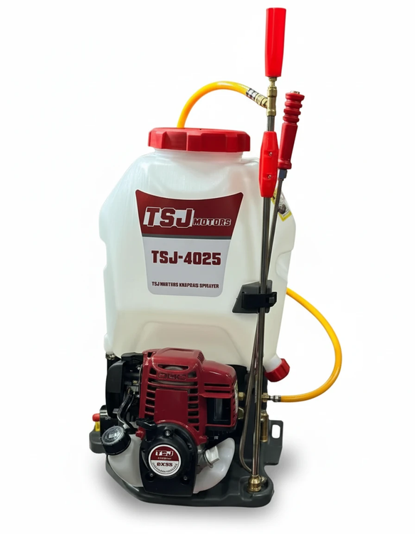 موتور 4 زمانه این دستگاه از نوع تک سیلندر هوا خنک است که با استفاده از هندل روی موتور روشن میشود. حجم موتور این دستگاه 35 سی سی است که میتواند حداکثر توان 1.6 اسب بخار راتولید کند. این موتور یک مخزن مخصوص بنزین دارد که حجم آن 630 سی سی است و یک مخزن جداگان و کوچک تر برای روغن دارد که باید به مقدار 100 روغن موتور 4 زمانه نمره 40 داخل آن بریزید. گنجایش مخزن این دستگاه 25 لیتری است و جنس آن از پلی اتیلن مقاوم است. این محصول همراه با 2 عدد لانس عرضه میشود که یکی مخصوص سمپاشی درختان و دیگری برای صیفی جات طراحی شده است. ارتفاع پرتاب سم با استفاده از این محصول در حدود 6 متر بوده و وزن آن 10 کیلوگرم میباشد.