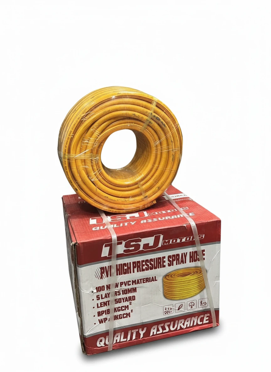 شلنگ سمپاش 8.5 سه لایه TSJ دارای متراژ حلقه شیلنگ 50 یارد (معادل 45 متر) است. این طول مناسب به کاربران این امکان را میدهد که به راحتی در زمینهای بزرگ و باغهای وسیع به سمپاشی بپردازند.