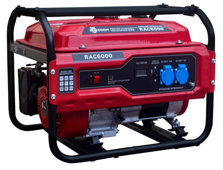 موتور برق راکون 3.3 کیلو وات با توان دایم 3 کیلو وات و توان نهایی 3.2 کیلو وات از برند خوش نام توشیبا ساخت کشور چین و یکی از شرکت هایی ست که به صورت کاملا تخصصی به تولید موتور برق می پردازد می باشد سوخت این محصول بنزین بوده و از یک موتور تک سیلندر 4 زمانه با توان 7.5 اسب بخار بهره میبرد که در این حالت راندمان بسیار بالایی داراست این محصول دارای سیستم avr یا نوسان گیر می باشد نحوه استارت و روشن شدن این محصول با استفاده از هندل طنابیست و در حین کار صدای بسیار کمی تولید می کند این محصول مناسب جهت مصارف باغی و کشاورزی یا به عنوان تامین کننده برق مورد نیاز در کارگاه های صنعتی یا منازل می باشد.سیم پیچی ژنراتور این موتور برق تماما از جنس مس است.