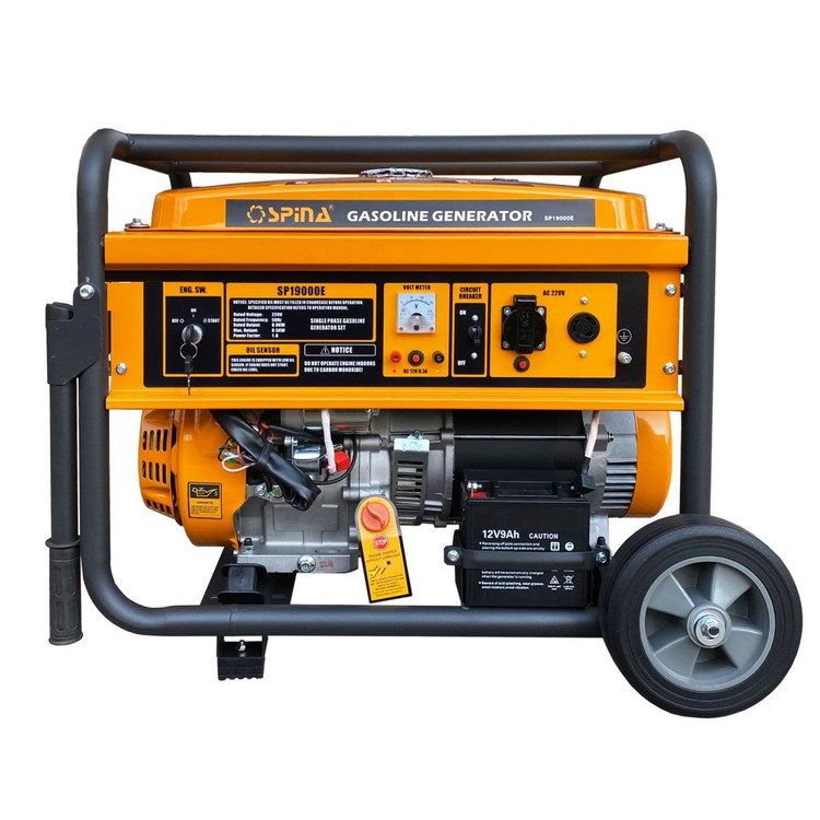 در موتور برق اسپینا مدل SP19000E از یک موتور 18 اسب 4 زمانه استفاده شده است. دارای باک 25 لیتری بوده و با یک باک بین 8 الی 12 ساعت جریان برق تولید میکند. این مدل دارای 2 خروجی 220 ولت AC و یک خروجی DC میباشد.