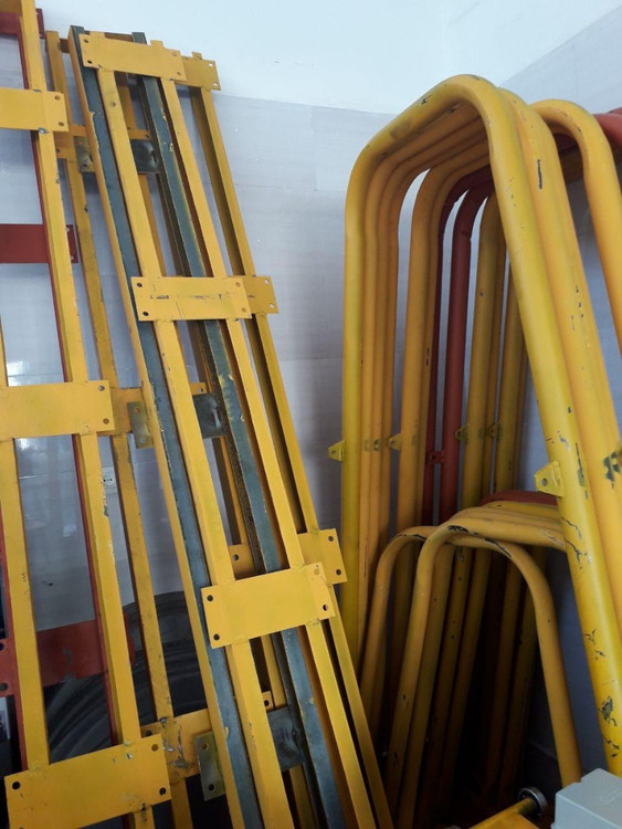 در مورد پایهها و ریل نیز استانداردها رعایت شده و پایههای بزرگ بالابر از لوله فولادی نمره 6 و پایههای کوچک آن از لوله فولادی نمره 5 با گوشت 2 میلیمتر تهیه گردیده است تا زیر فشار خم نشوند. ریل دستگاه نیز از ناودانی نمره 8 و با ضخامت 2 میلیمتر تهیه شده تا در اثر فشار زیاد تاب برندارد.