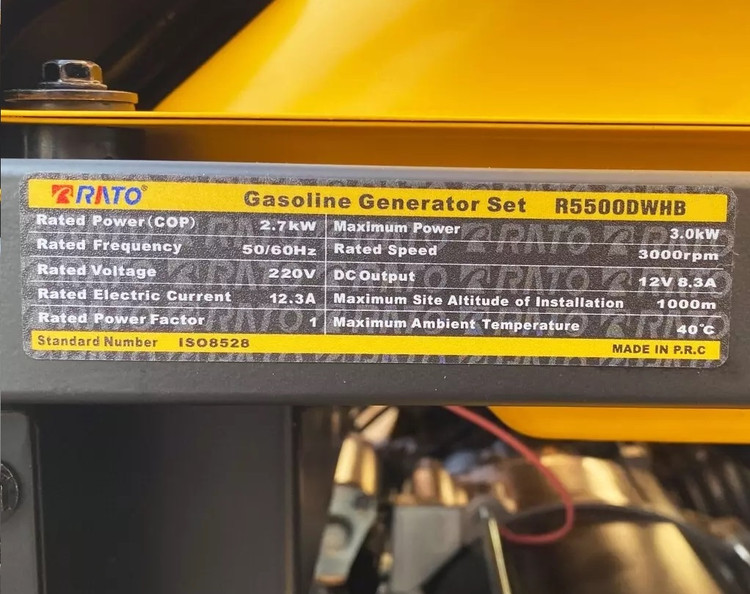 موتور برق راتو 3000 وات مدل RATO R5500DWHB , از نوع موتور هواخنک, چهازمانه و تکفاز میباشد. نوع سوخت قابل استفاده بنزین است. فرکانس 50 هرتز است. دارای موتور قدرتمند به توان 7 اسب است که در حالت اوج به خروجی برق 3000 وات میرسد.