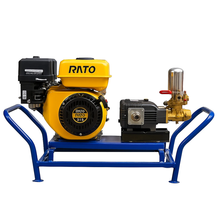 سمپاش زنبه ای راتو 7 اسب با پمپ 45 بار یک محصول تمام عیار باغبانی است. کشاورز صنعت برای مونتاژ این دستگاه از موتور خوش نفس برند راتو استفاده کرده است. راتو در حال حاضر بهترین برند چینی در زمینه طراحی موتورهای کوچک و بنزین سوز است. این موتور نیز از نوع تک سیلندر با عملکرد ۴ زمانه و هوا خنک است که به روش هندلی راهاندازی میشود. در عین حال برای کارکرد در نهایت سرعت قادر است تا توانی معادل ۷ اسب بخار را تولید نماید. سیستم انتقال توان این موتور نیز از نوع گیربکسی پیش بینی شده است. در امتداد موتور نیز از پمپ پیستونی قدرتمند برند تکنو چینی استفاده شده که قادر است تا حداکثر فشار ۴۵ بار را تولید کرده و برای توزیع سموم از ۳ عدد خروجی مستقل استفاده میکند.