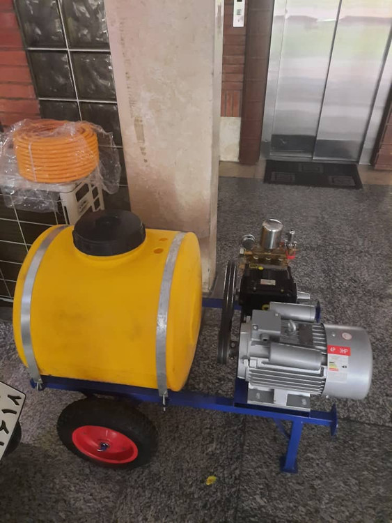 سمپاش فرغونی 100 لیتری برقی با پمپ 45 بار لوشانگی، یک نمونه سمپاش فرغونی برقی پرکاربرد است. این سمپاش فرغونی همانطور که از نامش پیداست نیازمند به برق است، از همین رو اگر دسترسی به برق دارید، این سمپاش میتواند گزینه خوبی برای خرید باشد. از این سمپاش بیشتر گلخانهدارها و دامداران استفاده میکنند که میزان آلایندگی آنها صفر است و میتوانند در محیطهای سرپوشیده نیز از این سمپاش استفاده کنند.