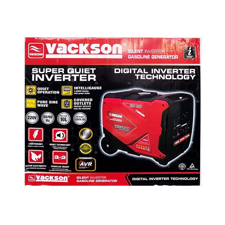 موتور برق استارتی واکسون مدل VK 14500 iSER, از نوع موتور هواخنک, چهازمانه و تکفاز میباشد. نوع سوخت قابل استفاده بنزین است. فرکانس 50 هرتز است. دارای موتور قدرتمند به توان 9 اسب است که در حالت اوج به خروجی برق 4500 وات میرسد.