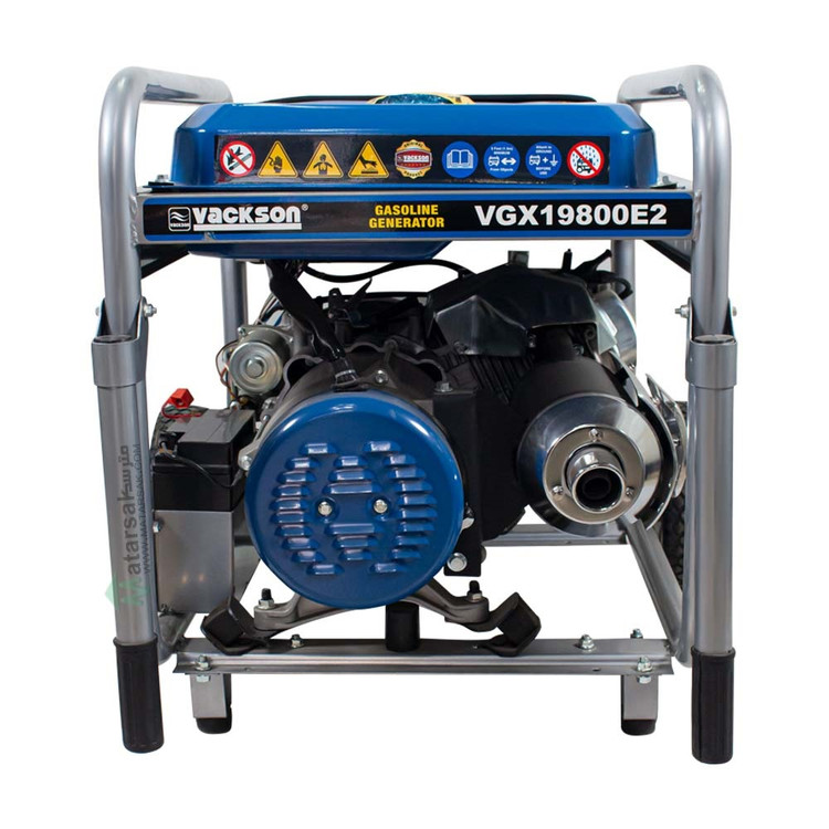 موتور برق واکسون 8/5 کیلووات مدل VACKSON VGX19800E2 , از نوع موتور هواخنک, چهازمانه و تکفاز میباشد. نوع سوخت قابل استفاده بنزین است. فرکانس 50 هرتز است. دارای موتور قدرتمند به توان 18 اسب است که در حالت اوج به خروجی برق 8500 وات میرسد.