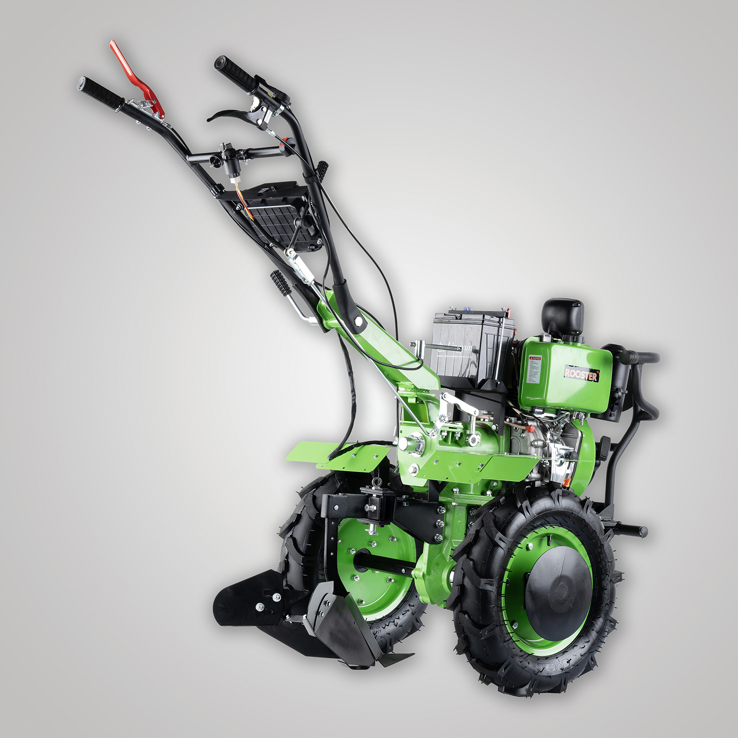 32 عدد تیغه ((4×1+4×3)×2)، استارتی همراه با باتری 36Ah، چراغ، خطکش، دو عدد دیسک (تیغه گردان)، گارد ضربه گیر، نهرکن قابل تنظیم، هواکش روغنی