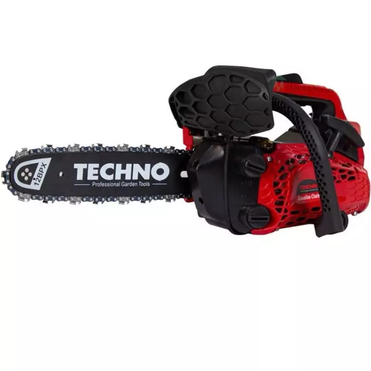 این مدل که توسط شرکت تکنو واقع در چین به بازار معرفی شده است دارای تیغه و زنجیر 30 سانتیمتری است. برای ساخت این محصول از یک موتور تک سیلندر بنزینی با حجم 25.4 سی سی استفاده شده است که قادر به تولید توانی برابر با 1.1 اسب بخار است. وزن این محصول 3.5 کیلوگرم است که باعث میشود در هنگام کار با آن دستان و بازوهای شما دیر تر خسته شود. برای راه اندازی این مدل هم مانند سایر محصولات کمپانی تکنو، شما باید روغن موتور دو زمانه را با نسبت 1:25 با بنزین ترکیب کنید و داخل مخزن سوخت بریزید.